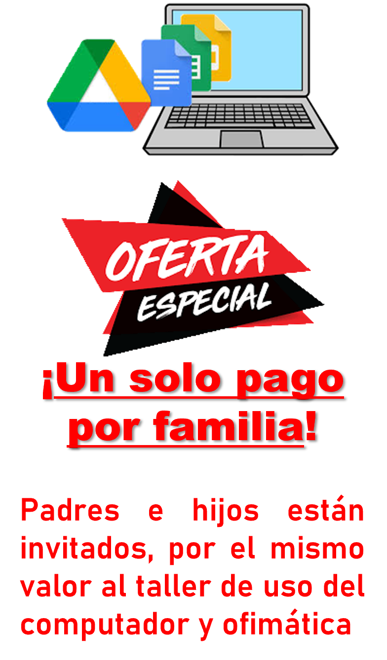 ¡Tus hijos brillarán en el mundo digital! Les enseñamos a usar el computador y colaborar en línea con sus amigos, usando las aplicaciones de Google. Ideal para hacer las tareas, crearán sus propios documentos, presentaciones y hojas de cálculo con actividades divertidas usando realidad aumentada.